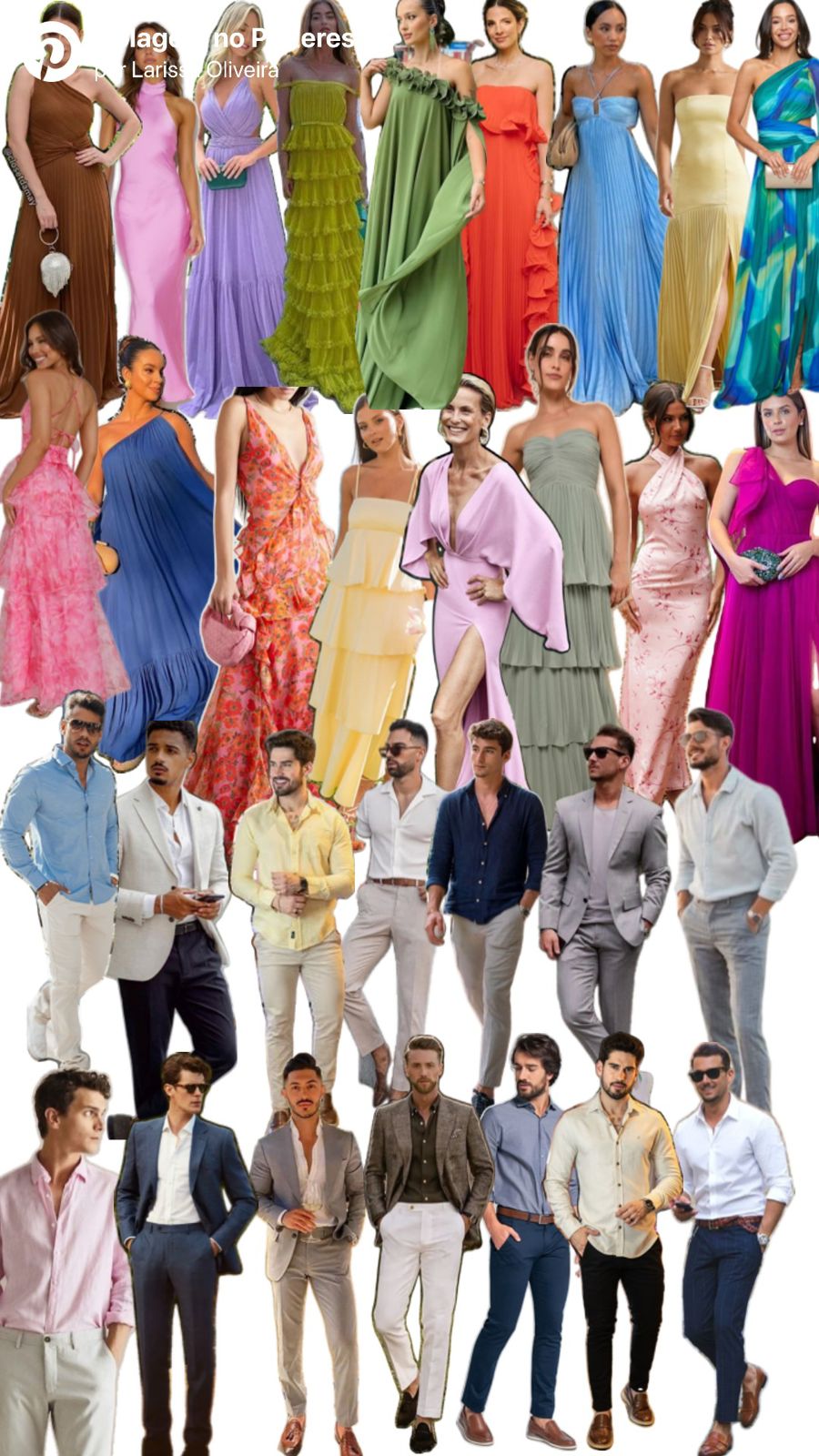 Para elas: vestidos leves e fluidos, com tecidos frescos e charmosos, lisos ou estampados. Salto fino pode ser um desafio no gramado, então sapatos mais estáveis ou blocados são bem-vindos. Pedimos apenas, com todo carinho, que evitem a cor branca e a reservam apenas para a noiva. 💛